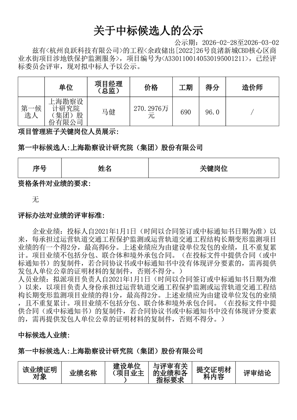 余政储出[2022]26号良渚新城CBD核心区商业水街项目涉地铁保护监测服务